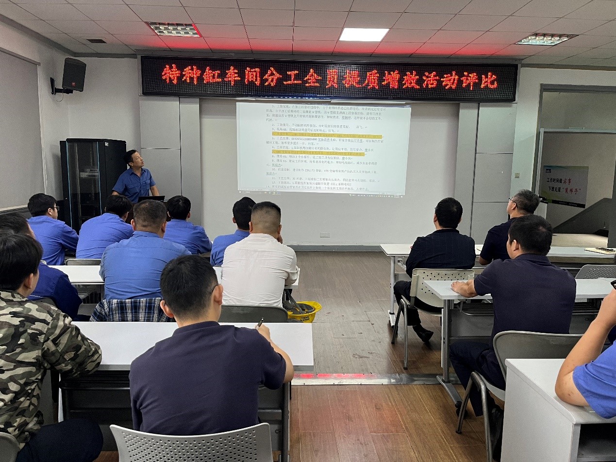 活動(dòng)聚焦一線智慧,面向全員征集涵蓋“工裝優(yōu)化”、“工藝改善”、“質(zhì)量控制”、“現(xiàn)場(chǎng)6S”、“安全防范”等多領(lǐng)域的“金點(diǎn)子”。廣大員工立足崗位,踴躍獻(xiàn)計(jì),累計(jì)提交了76項(xiàng)的改善提案。例如代波針對(duì)V型鐵易劃傷活塞桿問題,提出覆蓋軟性材料的解決方案;田飛就設(shè)備操作提出配備專用旋轉(zhuǎn)地線夾的優(yōu)化建議;廖小兵則對(duì)關(guān)鍵工裝的定位穩(wěn)定機(jī)構(gòu)提出了切實(shí)可行的改進(jìn)設(shè)想。每一份提案都凝結(jié)著員工對(duì)品質(zhì)的執(zhí)著追求與對(duì)效率提升的深入思考,充分彰顯了車間上下同心、群策群力的主人翁精神。眾多優(yōu)質(zhì)提案的涌現(xiàn),是全體員工對(duì)工藝精進(jìn)、質(zhì)量提升、安全保障深度共識(shí)的集中體現(xiàn),這股源自全員的內(nèi)生動(dòng)力,正是特種缸車間強(qiáng)大凝聚力最生動(dòng)的注腳。